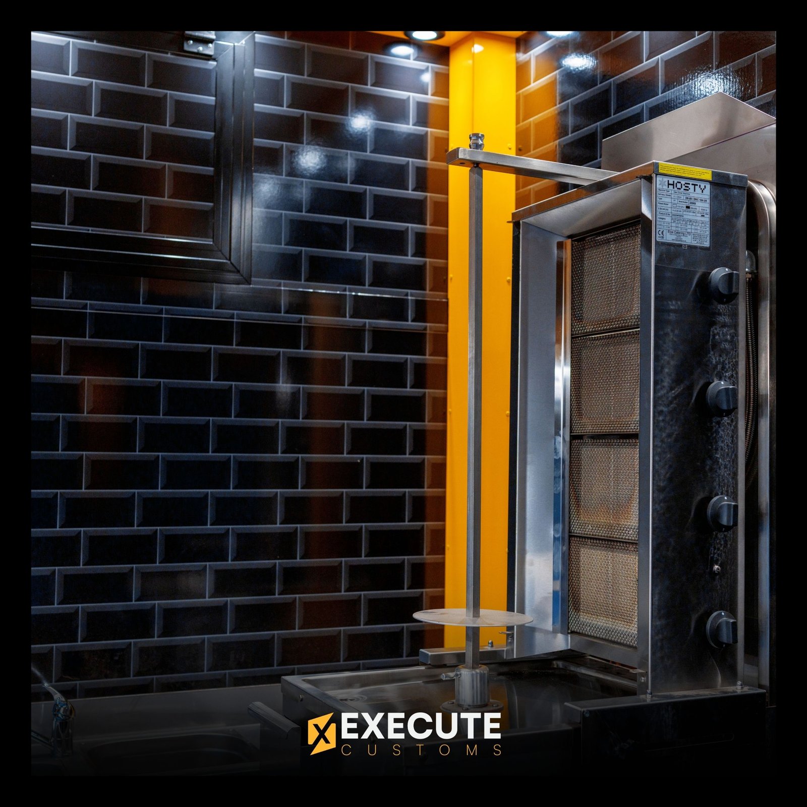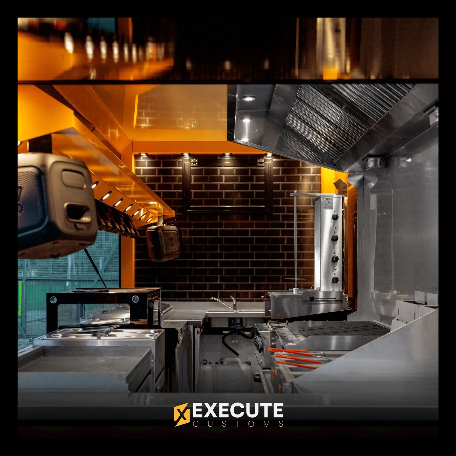 Inside, the layout is built for fast cooking and easy movement. Stainless-steel worktops, brick-style walls and warm lighting give the workspace a clean and solid feel. Everything is spaced out so the team can cook, prep and serve without getting in each other’s way. The hood system, lighting and storage all fit neatly into the build.