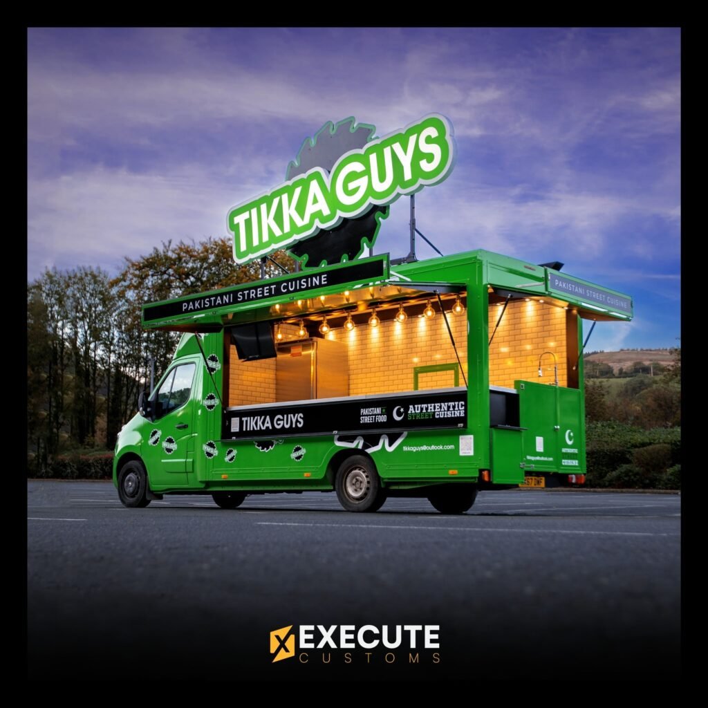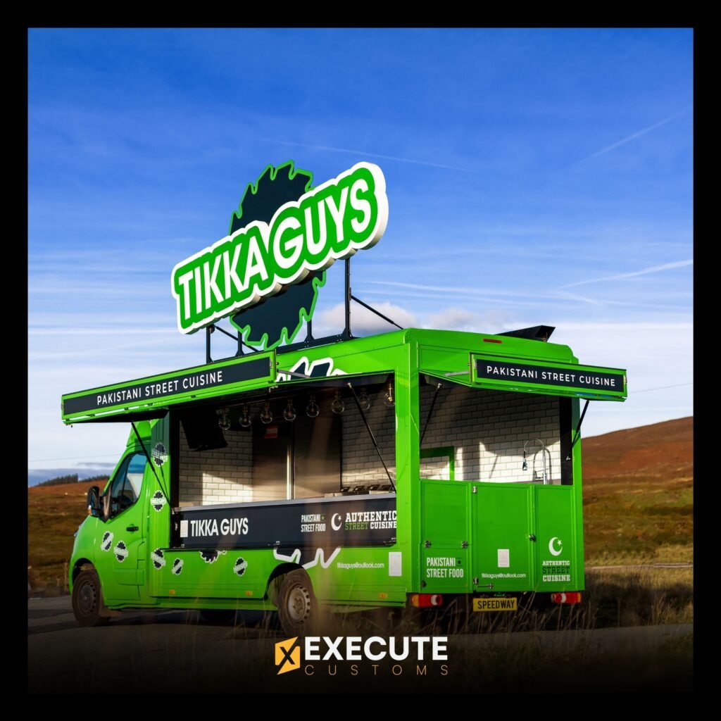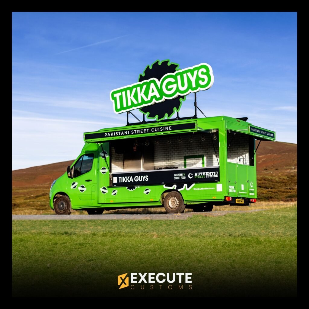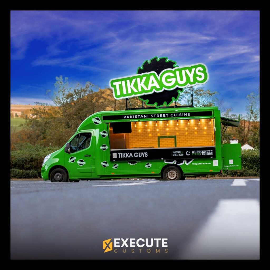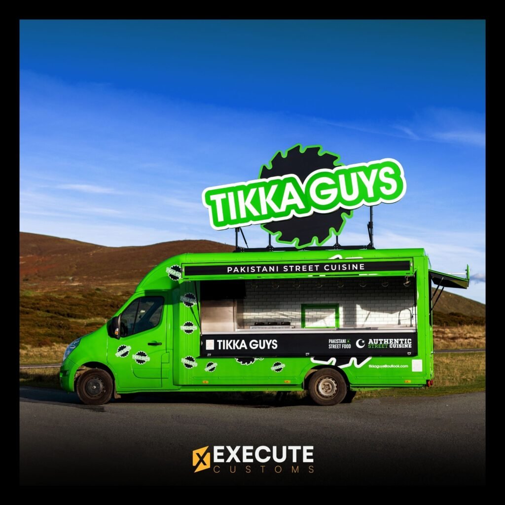 We recently worked with Tikka Guys, a Pakistani street food brand, to create a fully custom food van that matched their bold and vibrant identity. The van was designed from the ground up, featuring a complete mobile kitchen setup and a bright green exterior that instantly stands out wherever it goes.