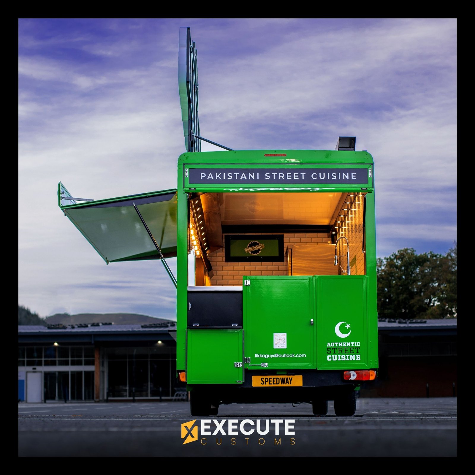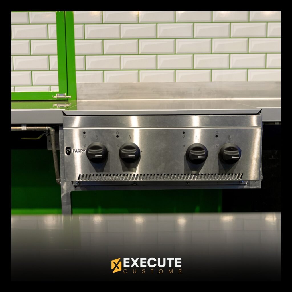 Our goal was to build a food truck that really shows off the spirit of Pakistani street food, vibrant, bold, and full of character. The bright green design and large LED sign make it stand out, while the clean, practical interior keeps things easy for the team to work in. It’s a perfect mix of style and function that fits the Tikka Guys brand perfectly.