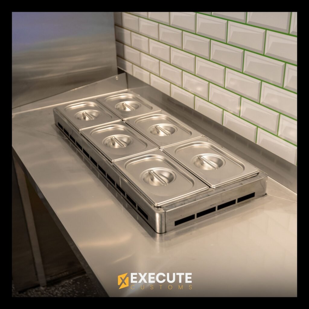 A standout feature of this build is the massive LED sign, ensuring maximum visibility and brand presence wherever the truck goes. The design reflects the authentic street cuisine vibe while maintaining a modern, professional finish that embodies Tikka Guys’ energetic identity.
